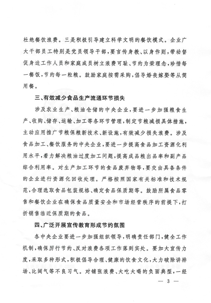 關(guān)于在中央企業(yè)堅決制止餐飲浪費行為切實培養(yǎng)節(jié)約習(xí)慣的通知