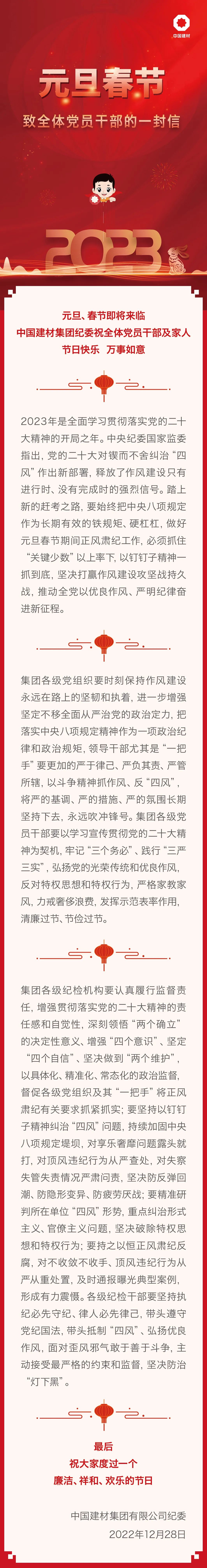 中國建材集團(tuán)紀(jì)委致全體黨員干部的一封信