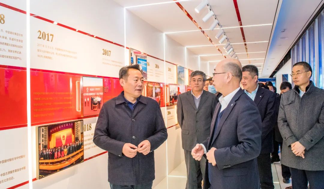 座談交流前,虞愛華一行在常張利陪同下參觀了中國建材集團(tuán)展廳,了解了集團(tuán)的發(fā)展歷程和產(chǎn)業(yè)發(fā)展情況,并對這些年來取得的驕人業(yè)績給予高度評價(jià)。