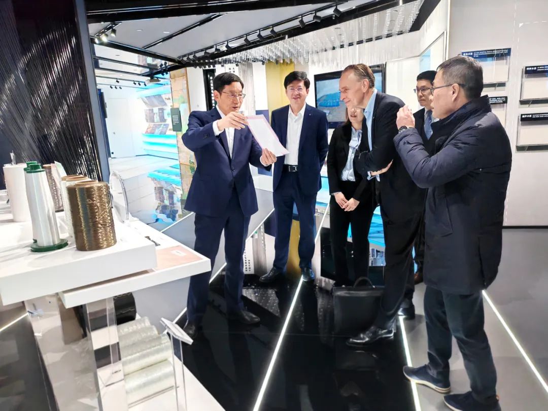 會前,周育先陪同托馬斯·布柏爾、蔡明潑等參觀了集團(tuán)展廳。