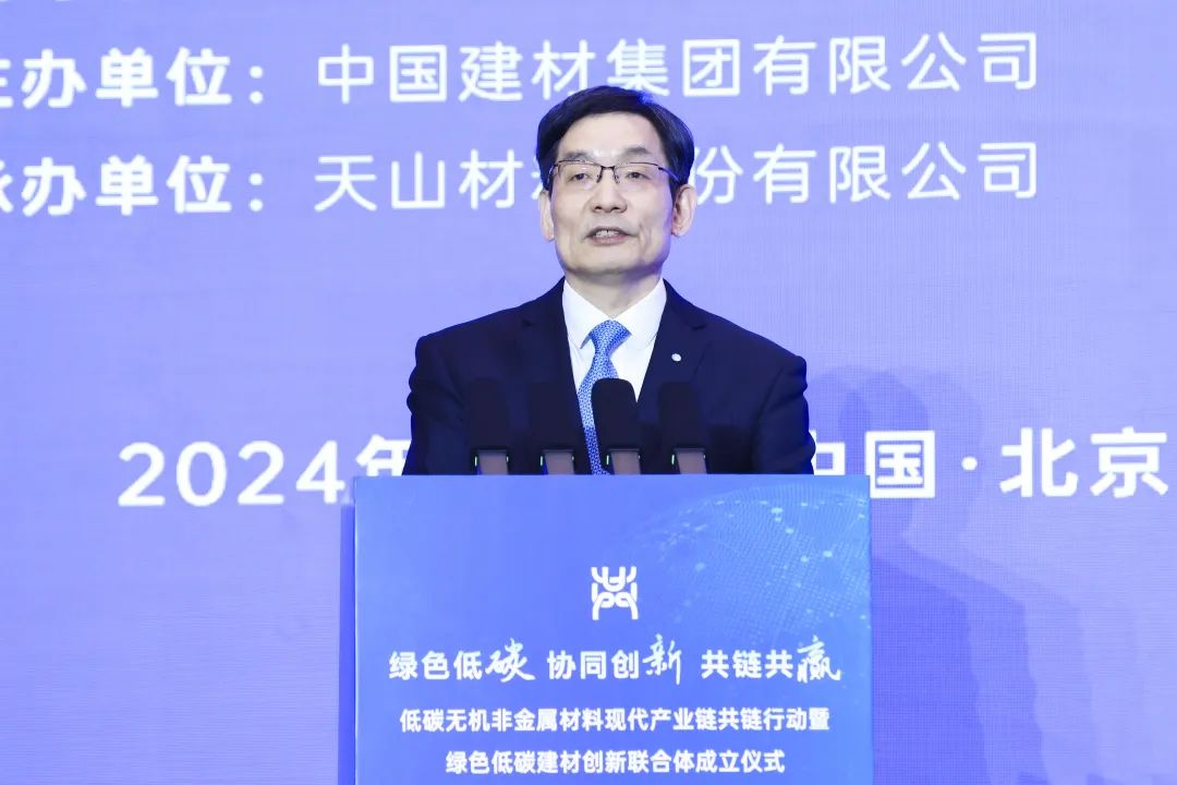 11月28日,在國務(wù)院國資委指導(dǎo)下,由中國建材集團主辦、天山材料股份有限公司承辦的低碳無機非金屬材料現(xiàn)代產(chǎn)業(yè)鏈共鏈行動暨綠色低碳建材創(chuàng)新聯(lián)合體成立儀式在京舉辦。大會深入學(xué)習(xí)貫徹落實黨的二十大和二十屆三中全會精神,以“綠色低碳、協(xié)同創(chuàng)新、共鏈共贏”為主題,匯集政府、協(xié)會、產(chǎn)業(yè)、學(xué)界各方智慧,搭建高效交流平臺,推動低碳無機非金屬材料現(xiàn)代產(chǎn)業(yè)鏈融通發(fā)展。中國建筑材料聯(lián)合會黨委書記、會長閻曉峰,中國建材集團黨委書記、董事長周育先出席并致辭,國務(wù)院國資委規(guī)劃發(fā)展局相關(guān)負責(zé)同志、工信部原材料工業(yè)司副司長張海登出席。中國工程院院士、功能梯度復(fù)合材料科學(xué)家張聯(lián)盟,中國工程院院士、國家玻璃新材料創(chuàng)新中心主任彭壽出席并作主題報告。儀式由中國建材集團黨委常委、副總經(jīng)理王于猛與中國建材集團總經(jīng)理助理,中國建材總院黨委書記、董事長郅曉共同主持,王于猛作會議總結(jié)。