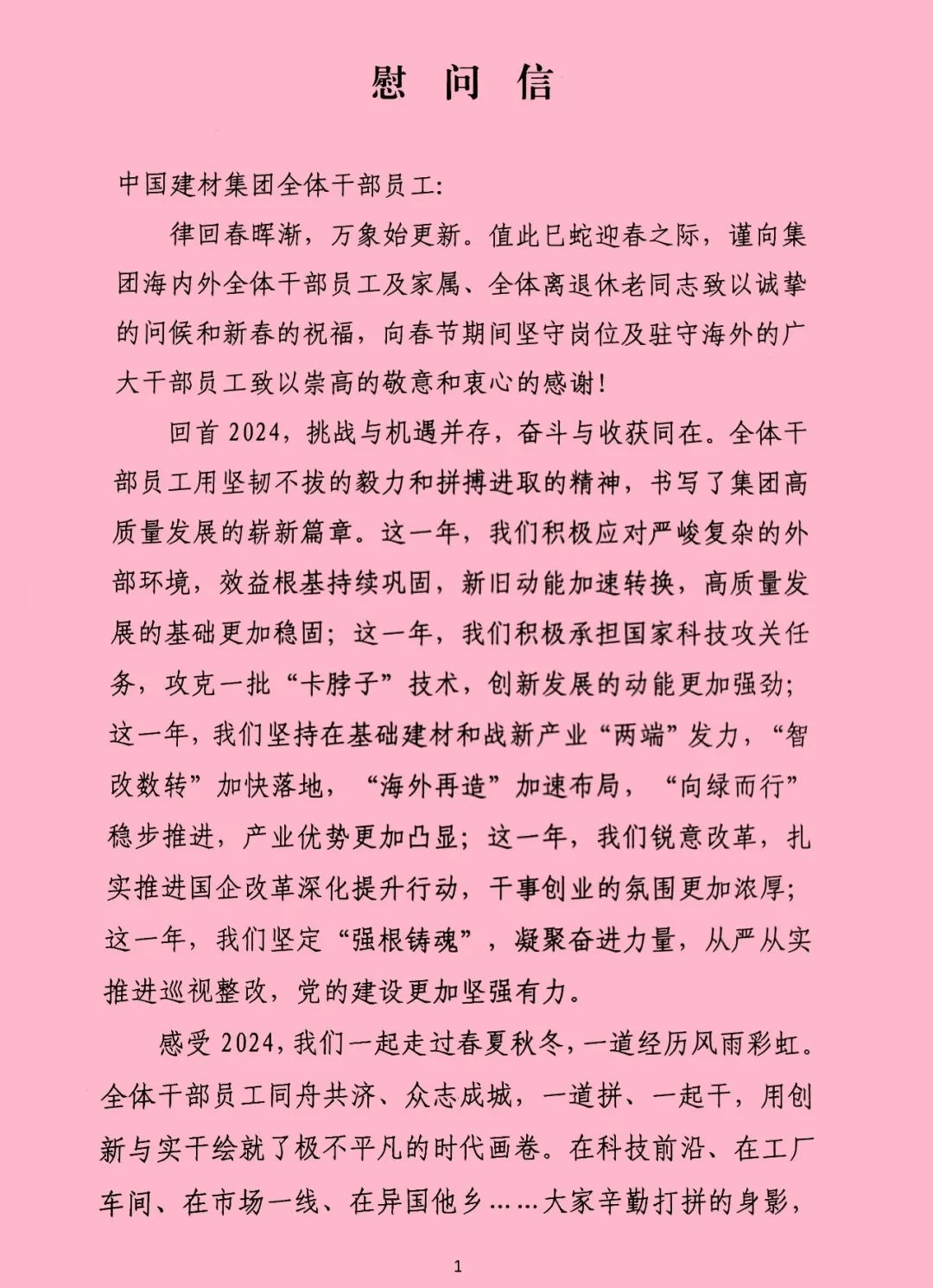 致中國建材集團(tuán)全體干部員工及家屬的一封信