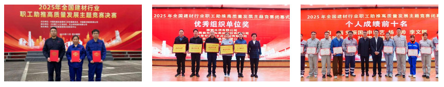 李睿祎在閉幕式上講到,本項(xiàng)競(jìng)賽作為全國(guó)總工會(huì)“十四五”引領(lǐng)性勞動(dòng)和技能競(jìng)賽項(xiàng)目,自2022年啟動(dòng)以來(lái)已成功舉辦四屆,是貫徹黨的二十屆四中全會(huì)精神、深化產(chǎn)業(yè)工人隊(duì)伍建設(shè)改革、落實(shí)全總“559”工作部署的重要舉措。圍繞下一步工作,她提出三點(diǎn)要求:一要堅(jiān)決貫徹黨中央決策部署,將“十五五”規(guī)劃目標(biāo)轉(zhuǎn)化為生動(dòng)實(shí)踐;二要大力弘揚(yáng)勞模精神、勞動(dòng)精神、工匠精神,廣泛開(kāi)展勞動(dòng)競(jìng)賽與群眾性創(chuàng)新活動(dòng),推動(dòng)科技創(chuàng)新和產(chǎn)業(yè)創(chuàng)新深度融合,為構(gòu)建現(xiàn)代化產(chǎn)業(yè)體系貢獻(xiàn)建材力量;三要扎實(shí)推進(jìn)產(chǎn)業(yè)工人隊(duì)伍建設(shè)改革,強(qiáng)化技能價(jià)值導(dǎo)向,為加快高水平科技自立自強(qiáng)。