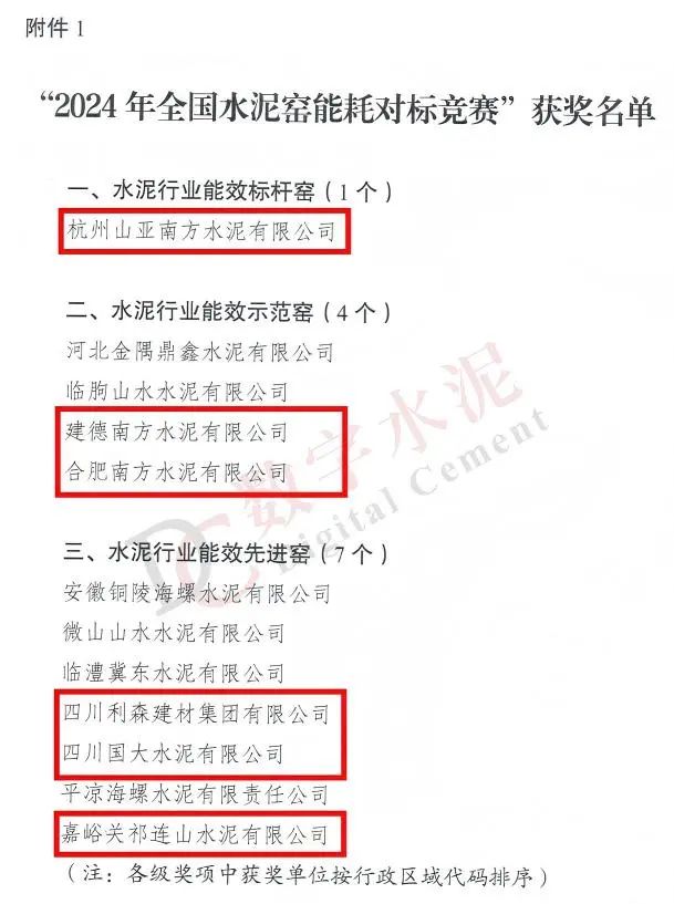 “2024年全國水泥窯能耗對標(biāo)競賽”獲獎名單