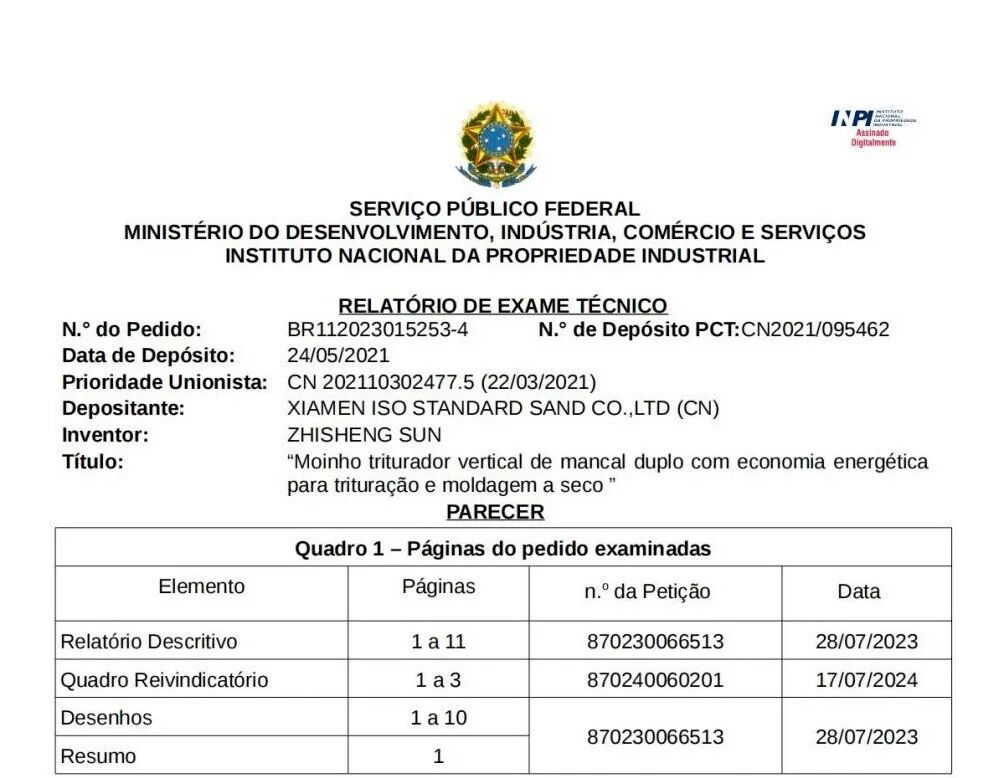 2、廈門標準砂獲巴西PCT國際專利授權(quán)