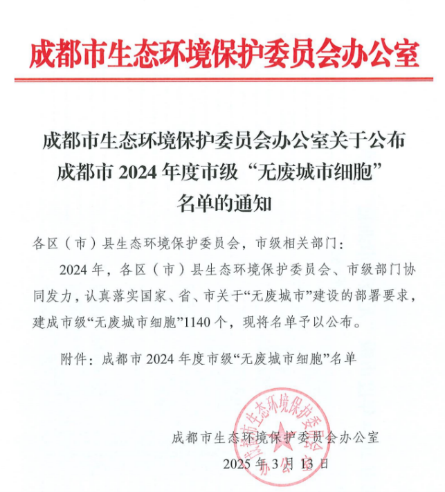中國巨石成都公司積極響應(yīng)國家《“十四五”工業(yè)綠色發(fā)展規(guī)劃》以及省市各級單位關(guān)于 “無廢企業(yè)” 建設(shè)的號召,將綠色發(fā)展理念融入到企業(yè)運營的每一個環(huán)節(jié)。憑借在綠色發(fā)展方面的卓越成就,獲評成都市2024 年度市級“無廢城市細(xì)胞”中的“無廢工廠”殊榮。這不僅是對巨石成都過往努力的高度認(rèn)可,更是其邁向可持續(xù)發(fā)展道路上的又一重要里程碑。