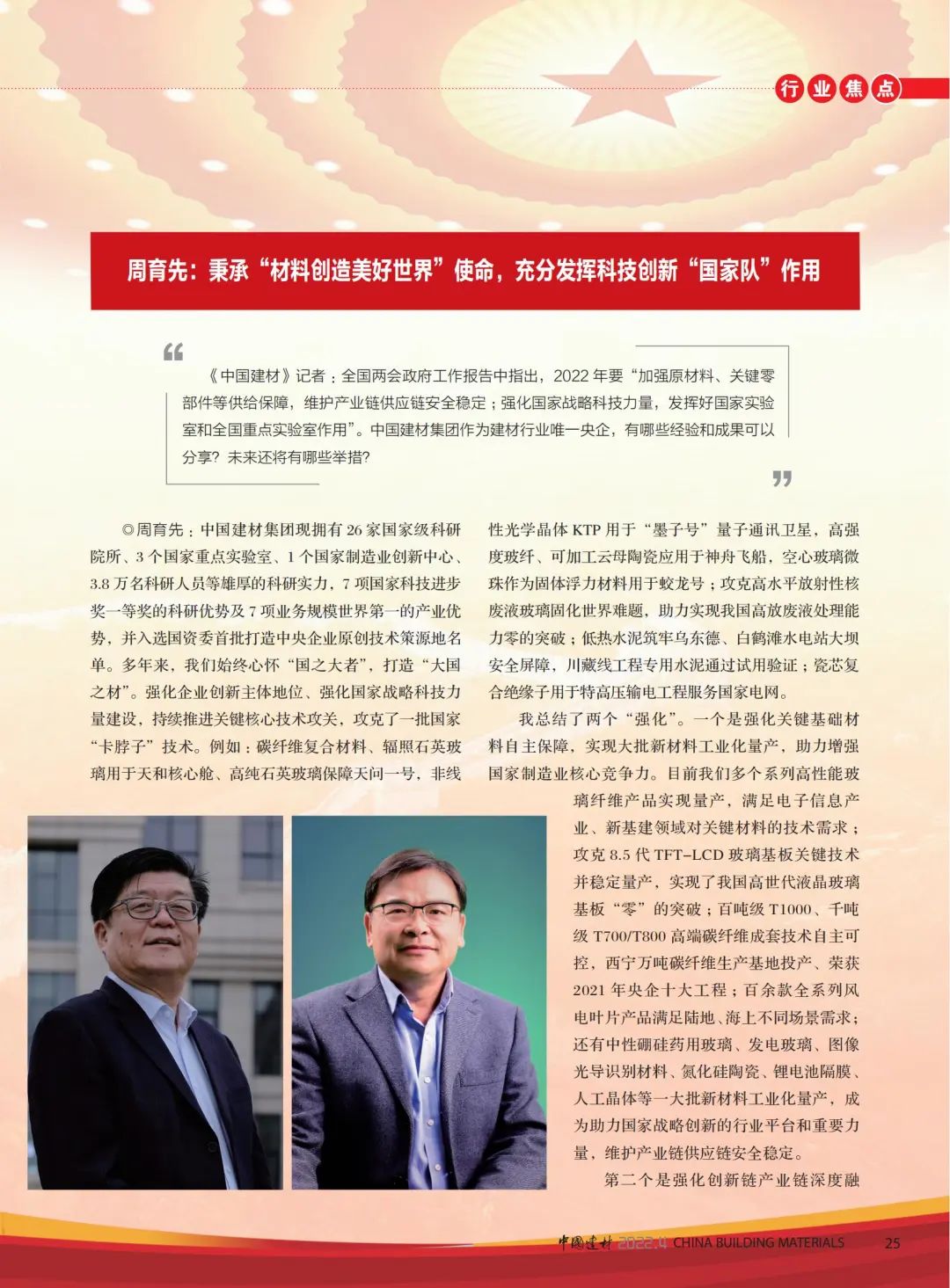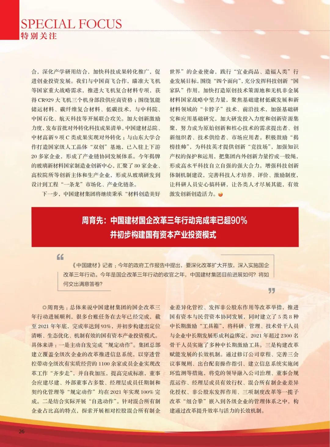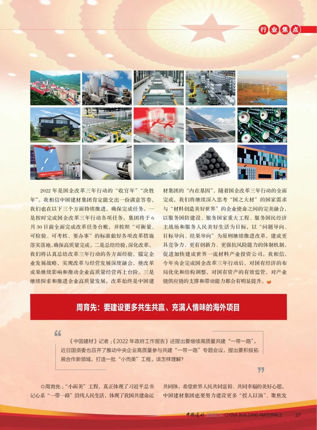高端訪談 | 《中國(guó)建材》雜志專訪周育先:中國(guó)建材改革創(chuàng)新,充分發(fā)揮“國(guó)家隊(duì)”作用