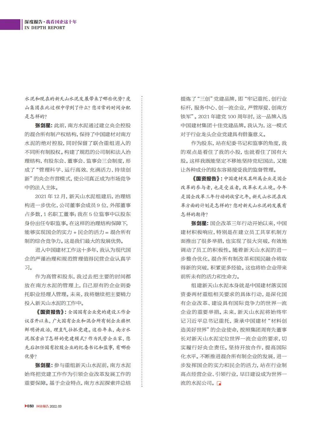改革親歷者訪談 | 《國資報告》專訪中國建材新天山水泥張劍星:“國”“民”牽手,皆大歡喜