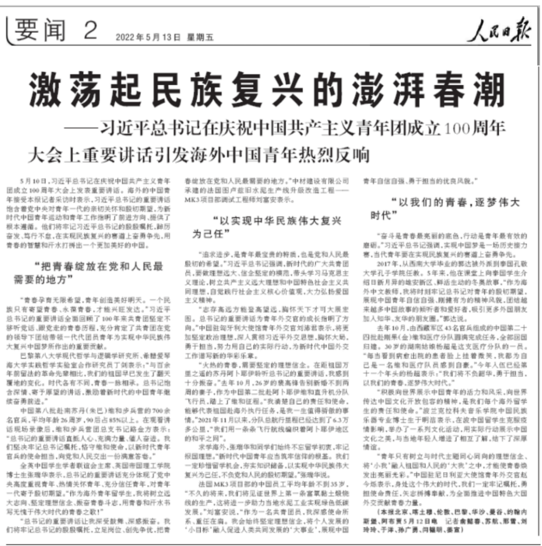 人民日報刊文《激蕩起民族復興的澎湃春潮》,中國建材海外青年榜上有名