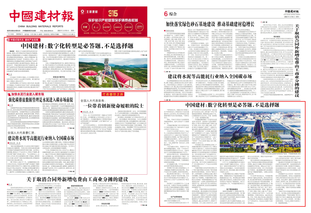 2023年全國兩會(huì)政府工作報(bào)告把“加快建設(shè)現(xiàn)代化產(chǎn)業(yè)體系”列為重點(diǎn)工作之一,明確提出要大力發(fā)展數(shù)字經(jīng)濟(jì),加快企業(yè)數(shù)字化轉(zhuǎn)型,著力提升高端化、智能化、綠色化水平?!吨袊ú膱?bào)》特設(shè)“中國式現(xiàn)代化·建材產(chǎn)業(yè)實(shí)踐”專欄,刊發(fā)了中國建材集團(tuán)黨委書記、董事長周育先的專訪文章。小料將全文分享給大家。