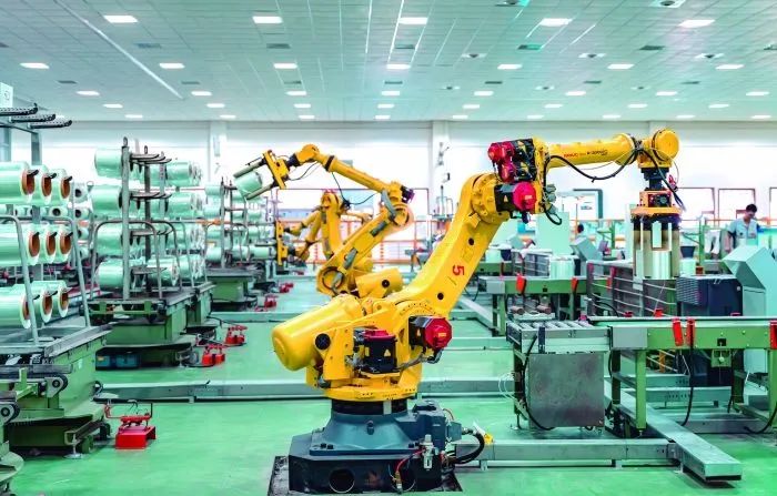 生產(chǎn)車間里忙碌的機(jī)械手臂