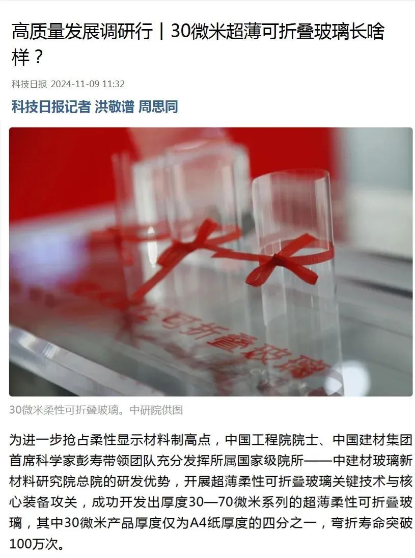 現(xiàn)場(chǎng)查看了超薄柔性玻璃等最新科技創(chuàng)新成果
