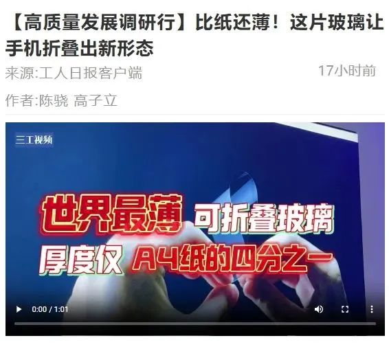 是目前工業(yè)化最薄的可折疊玻璃