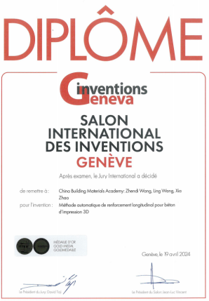 近年來,中國建材總院在3D打印領(lǐng)域接連取得創(chuàng)新成果。在2024年舉行的第49屆日內(nèi)瓦國際發(fā)明展上,中國建材總院團(tuán)隊(duì)自主研發(fā)的“基于3D打印混凝土的自動縱向配筋技術(shù)”獲得金獎。