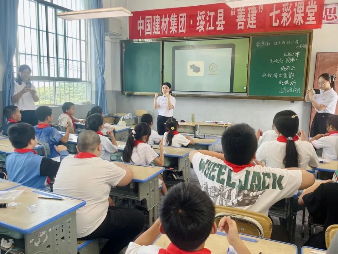 “善建七彩課堂”的動人之處,在于它始終貼著山區(qū)孩子的需求“生長”。志愿者們不只是簡單授課,更結(jié)合中國建材集團的產(chǎn)業(yè)特色,把水泥、玻璃、碳纖維這些“硬核”建材知識,轉(zhuǎn)化成了孩子們能觸摸、能操作、能理解的生動課程。在綏江,地勘中心志愿者帶孩子們當(dāng)“地質(zhì)偵探”,用放大鏡觀察礦物光澤,制作“礦物身份證”;在永善,三獅材料志愿者讓學(xué)生親手調(diào)配水泥凈漿,感受建筑材料的“剛?cè)岵?;在昭陽,中建材信息志愿者通過雙節(jié)棍運動與手工制作,幫孩子們建立自信、培養(yǎng)美感。這些課程像一扇扇窗,讓孩子們看到大山外的科技世界,更在他們心里播下“材料創(chuàng)造美好世界”的種子——就像一個孩子在作文里寫的:“原來我們腳下的石頭能造火箭,我也要好好學(xué)習(xí),讓家鄉(xiāng)的材料走向世界?!?/p>