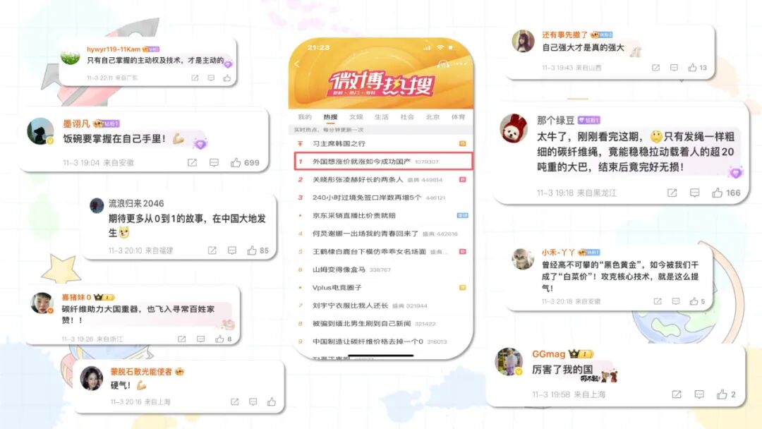 11月3日,#外國想漲價就漲如今成功國產(chǎn)# 詞條沖上微博熱搜榜第一,引發(fā)全網(wǎng)關(guān)注。這一切,都指向一種看似輕微卻是國之重器的材料——碳纖維。