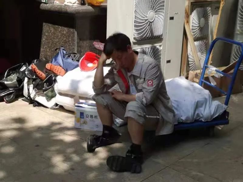 ▲登封中聯(lián)黨員先鋒突擊隊隊員席地靠墻休息