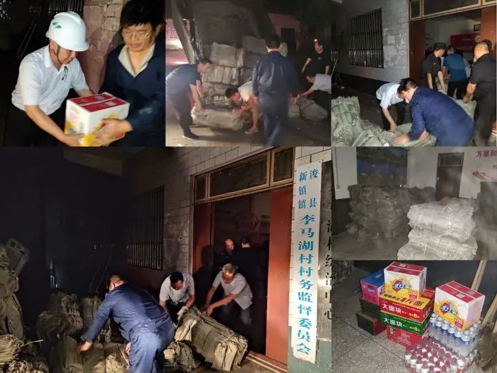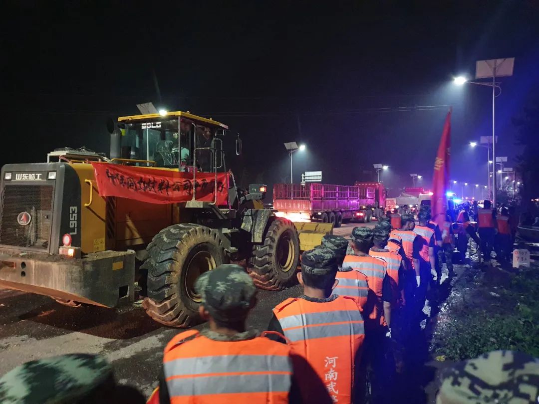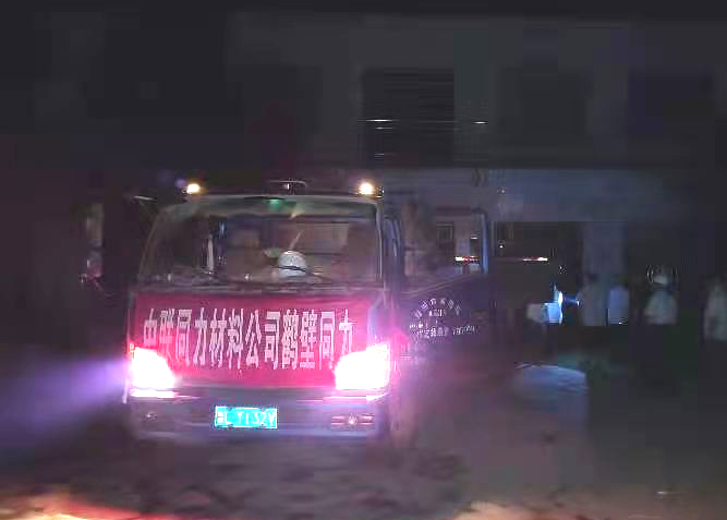 7月23日晚,所屬鶴壁同力水泥公司黨委組織部分黨員干部,連夜將3萬余條編織袋、礦泉水、方便面等急需物資,以最快的速度送至??h新鎮(zhèn),助力前線抗洪搶險。