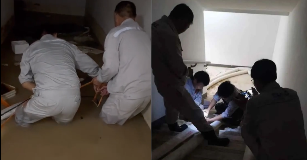 白坪鄉(xiāng)金成時代廣場地下受災(zāi)面積約15萬平方米,地下二層積水深度1.5米。白坪分公司緊急調(diào)配潛水泵3臺、300米消防水帶、200米電纜及其他配套設(shè)施,突擊隊第一時間到達,刻不容緩開展救援。