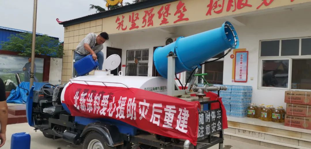北新涂料購置消毒霧炮車并為龐莊村公共區(qū)域消殺