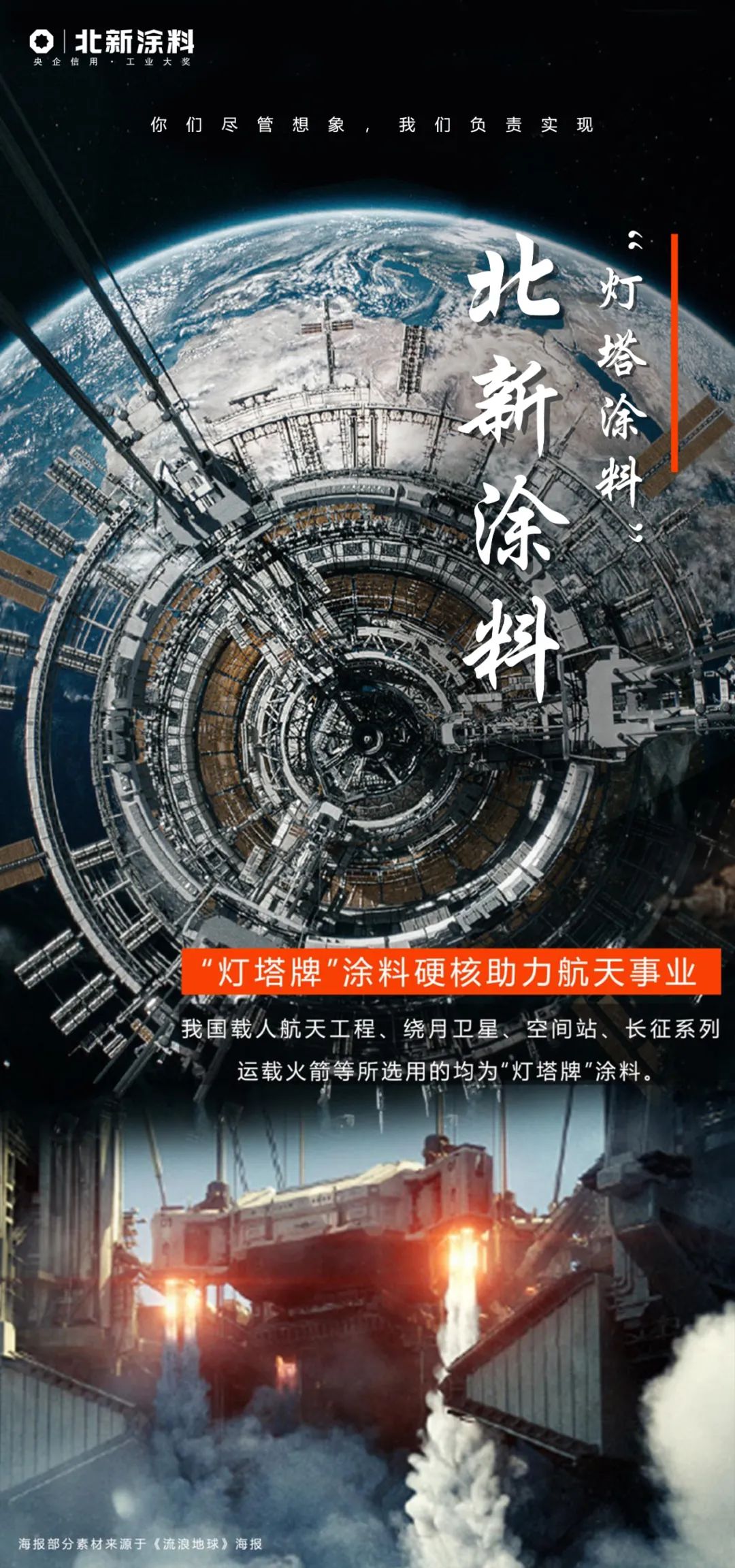 《流浪地球2》中,最引人矚目的炫酷垂直起降型飛行器不僅擁有“中國心(國產(chǎn)發(fā)動(dòng)機(jī))”,還身披“中國衣”。具有特種功能的“外衣”正是北新燈塔為其量身打造的隱身涂料先進(jìn)技術(shù),燈塔涂料多次服務(wù)長征系列運(yùn)載火箭、神舟系列、嫦娥系列等大國重器,獨(dú)具特色的結(jié)構(gòu)底漆、耐熱防護(hù)底面漆、抗靜電涂料、隱身涂料等,展現(xiàn)了中國制造在航空航天領(lǐng)域過硬的技術(shù)實(shí)力。