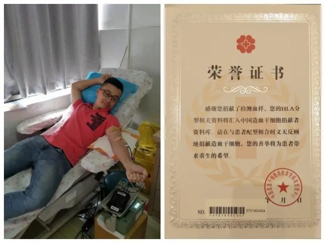 2005年,他剛踏入大學校園的時候,就積極向黨組織靠攏,成為一名入黨積極分子,用黨員的標準嚴格要求自己。一次偶然的機會,他看到學校宿舍門口停著一輛獻血車,車身上繪著幾個醒目的大字“無償獻血,無尚光榮”。想到中國共產(chǎn)黨的宗旨是全心全意為人民服務(wù),他踏上了獻血車。在此后的時間里,每年他都參加無償獻血活動?,F(xiàn)如今,他每年堅持參加兩次無償獻血,多次獲得了無償獻血奉獻獎的榮譽。2019年成功加入中國造血干細胞捐獻者資料庫。