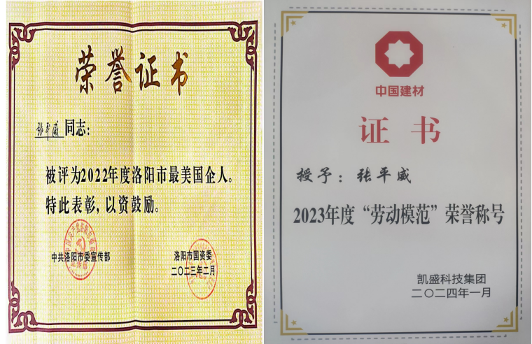 張平威作為洛陽市第十六屆人民代表大會代表,立足企業(yè)實際,圍繞新能源風口產(chǎn)業(yè)高質(zhì)量發(fā)展積極建言獻策,呼吁逐步完善相關(guān)制度保障和基礎(chǔ)設(shè)施建設(shè),推動戰(zhàn)略性新興產(chǎn)業(yè)在新賽道上蓬勃發(fā)展。相繼榮獲2006年洛玻集團“優(yōu)秀共產(chǎn)黨員標兵”,2007、2008年澠池縣、三門峽市“先進工作者”,2022年度洛陽市“最美國企人”,2022、2023年度凱盛科技集團“優(yōu)秀共產(chǎn)黨員”“勞動模范”等多項稱號。