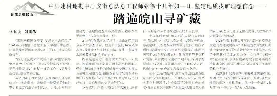 出彩建材人 | 踏遍皖山:張徐十六年的找礦路