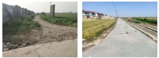 ▲新建村組水泥路及道路亮化前后對比圖(右圖為改造后)