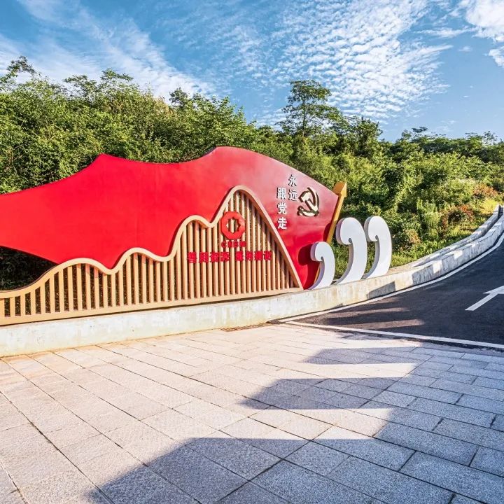 不僅修復(fù)生態(tài),更要美化青山,這是大家的共識,在保有原生自然生態(tài)的同時,這里進(jìn)行了公園式改造?!熬G水本無憂,因風(fēng)而皺面”,廠區(qū)里水塘的蕩漾,搖曳著兩側(cè)的青山;望遠(yuǎn)亭與復(fù)古城墻遙相輝映,面面紅旗迎風(fēng)招展;芳草萋萋,林木蔥蘢的景觀步道能眺望整個園區(qū),紅軍抗日時曾作為據(jù)點的山洞被保留修葺成觀景平臺;“礦業(yè)史”、“中國夢”等文化景觀打造了文化陣地。