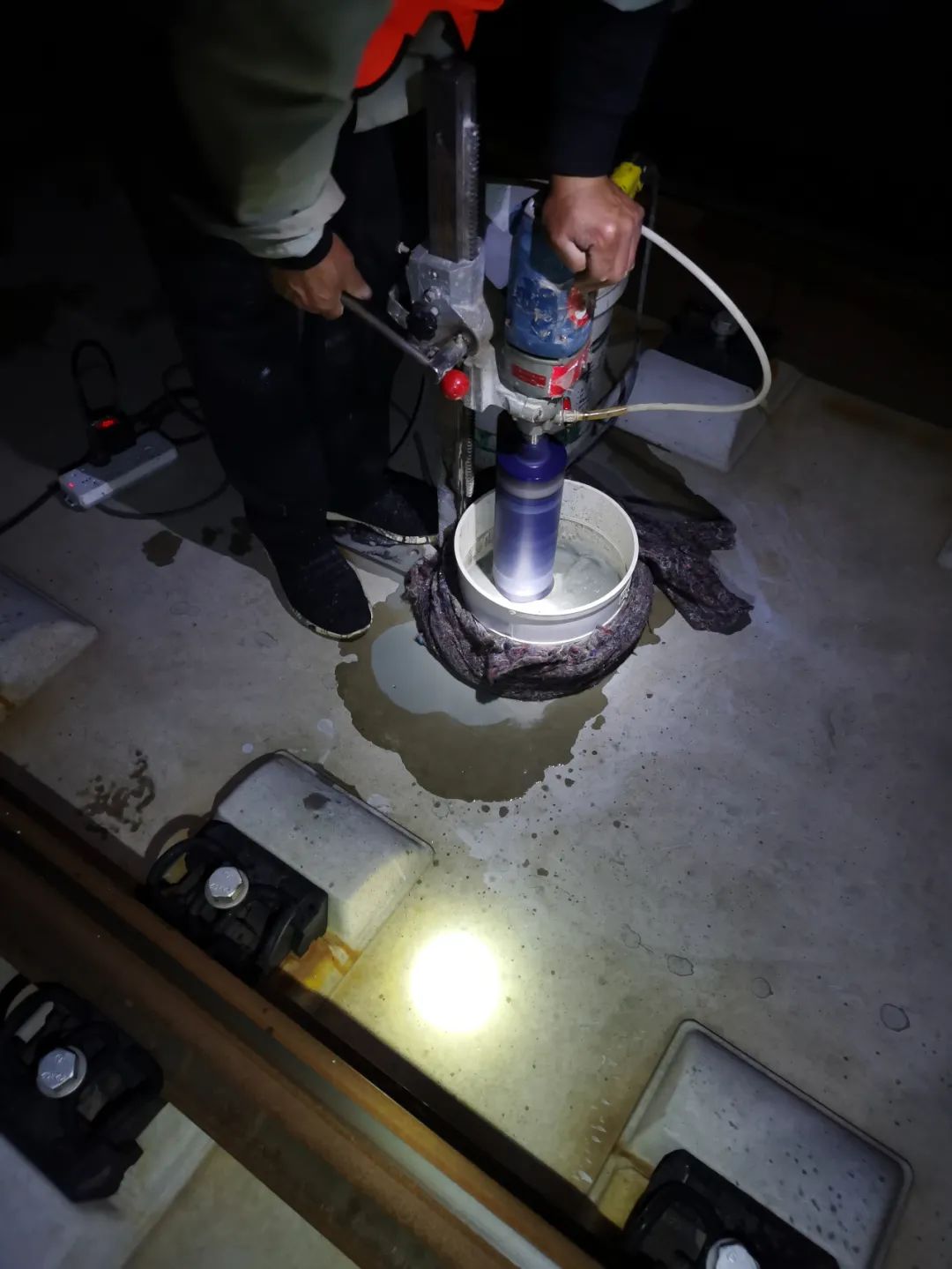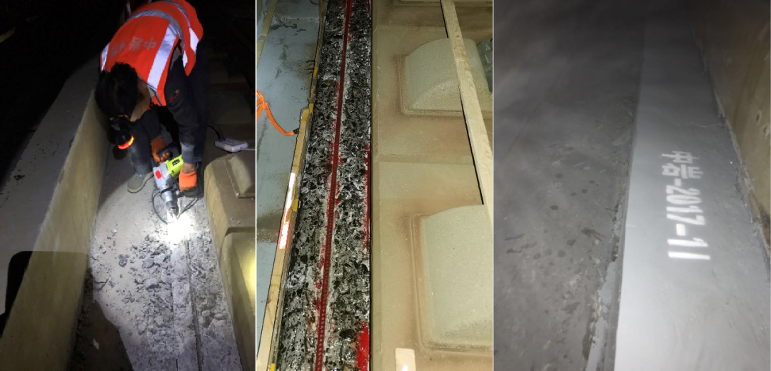 2020年3月,混凝土損傷修補(bǔ)材料成功應(yīng)用于京雄城際CRTSIII型軌道板灌漿孔病害整治項(xiàng)目,解決了鉆孔后潮濕基面作業(yè)難題,確保了修復(fù)材料與基面粘結(jié)可靠性。