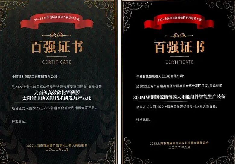 近日,集團(tuán)所屬中國(guó)建材工程“大面積高效碲化鎘薄膜太陽(yáng)能電池關(guān)鍵技術(shù)研發(fā)及產(chǎn)業(yè)化”項(xiàng)目和中建材凱盛機(jī)器人(上海)“300MW銅銦鎵硒薄膜太陽(yáng)能組件智能生產(chǎn)裝備”項(xiàng)目,成功入圍2022年上海市首屆高價(jià)值專利運(yùn)營(yíng)大賽百?gòu)?qiáng)。該大賽旨在挖掘創(chuàng)新程度高、市場(chǎng)競(jìng)爭(zhēng)力強(qiáng)、專利優(yōu)勢(shì)明顯的專利運(yùn)營(yíng)項(xiàng)目,推動(dòng)上海高校院所、企業(yè)等專利轉(zhuǎn)移轉(zhuǎn)化工作,充分釋放專利資源的經(jīng)濟(jì)效益和社會(huì)效益。