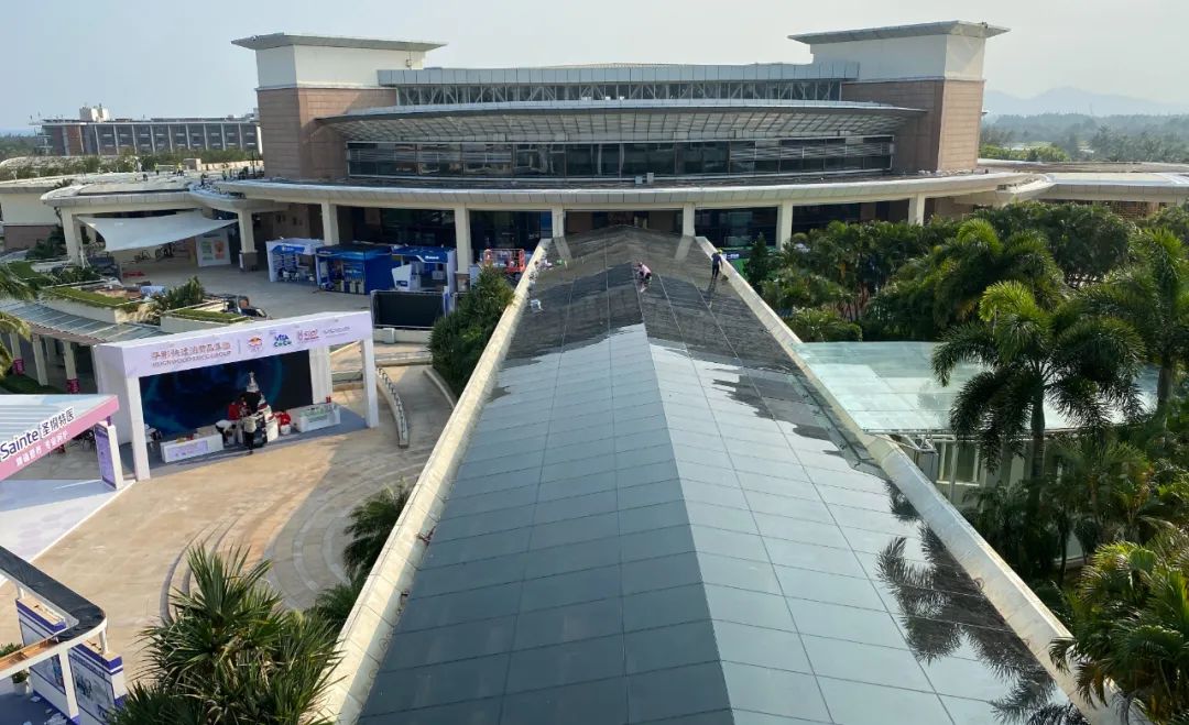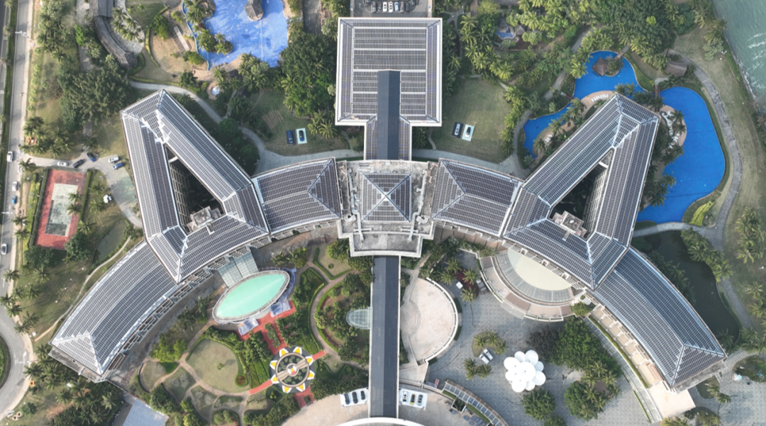 建筑能耗占博鰲近零碳示范區(qū)能耗的80%以上,示范區(qū)對(duì)亞洲論壇會(huì)議中心及酒店、東嶼島大酒店、新聞中心進(jìn)行了綠色低碳改造。在改造過程中,多場(chǎng)景應(yīng)用了凱盛所屬企業(yè)研發(fā)生產(chǎn)的大面積碲化鎘發(fā)電玻璃,采用光伏建筑一體化的理念,將發(fā)電建材與建筑完美融合,達(dá)到了功能性與美觀性的高度統(tǒng)一。