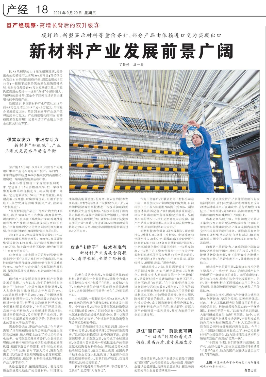 向祖國(guó)獻(xiàn)禮|中國(guó)建材集團(tuán)多項(xiàng)新材料業(yè)務(wù)量?jī)r(jià)齊升前景廣闊,人民日?qǐng)?bào)整版予以報(bào)道