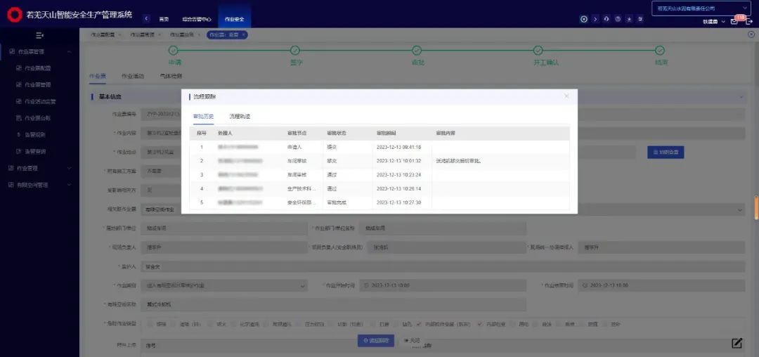 針對高風險作業(yè)問題,若羌天山通過系統(tǒng)將危險作業(yè)管理流程進行固化,并增加了監(jiān)管人員現(xiàn)場開工確認、作業(yè)過程監(jiān)督、作業(yè)完工確認等流程,監(jiān)管人員可掃描安全防護設(shè)施上的身份二維碼或拍照進行設(shè)施綁定,保障安全防護措施到位,確保各環(huán)節(jié)負責人都能夠按照設(shè)定的步驟嚴格推進,保證了作業(yè)管理流程“剛”性執(zhí)行,有利于根除無監(jiān)管作業(yè)頑疾。