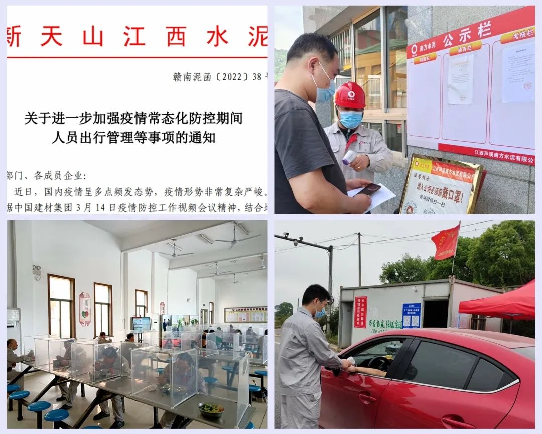 新天山江西水泥戰(zhàn)疫防控 近日,江西省內(nèi)新冠疫情多點頻發(fā),形勢嚴(yán)峻。為嚴(yán)格落實地方政府疫情防控要求,結(jié)合上級工作部署,新天山江西水泥上下同心同力,爭分奪秒,切實落實疫情防控措施,全力保障職工安全與健康。 科學(xué)部署。江西水泥第一時間下發(fā)《關(guān)于進(jìn)一步加強(qiáng)疫情常態(tài)化防控期間人員出行管理等事項的通知》,不定期抽查成員企業(yè)班子在崗和疫情防控執(zhí)行情況。堅守防線。區(qū)域公司本部嚴(yán)格落實南昌市紅谷灘區(qū)防疫要求,組織全員配合開展了24輪核酸篩查,每日“四驗一戴”,靜態(tài)管理累計10天;成員企業(yè)對進(jìn)廠員工、外來人員嚴(yán)格實行全員登記、體溫測量、“雙碼核驗”,確保防疫生產(chǎn)兩不誤。全面預(yù)防。每日進(jìn)行全面消殺,采取分隔、錯峰用餐等形式科學(xué)就餐,配足配齊防疫物資、設(shè)置臨時隔離點,防患于未然。志愿當(dāng)擔(dān)。各成員企業(yè)、員工積極響應(yīng)當(dāng)?shù)?、企業(yè)要求,開展系列志愿防疫活動,彰顯央企當(dāng)擔(dān)。