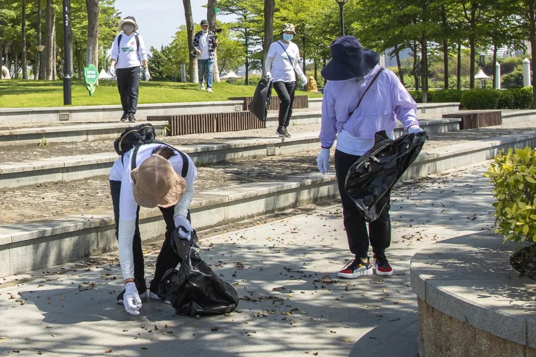 大家沿著杏林灣綠道一邊慢跑一邊彎腰撿拾道路兩旁和草叢里的廢棄物、生活垃圾等,為建設(shè)文明美麗中國(guó)盡自己的一份力量。