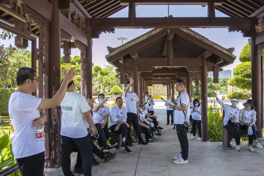 在園博苑“海上生明月,天涯共此時(shí)”的月光環(huán)背景前開展綠色環(huán)保知識(shí)搶答,在一問一答中將綠色低碳的理念植入大家心間。
