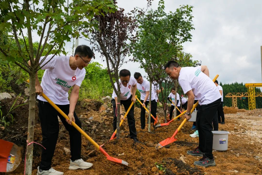 在植樹現(xiàn)場(chǎng),大家干勁十足,以飽滿的熱情共植黔南州州樹——楓香樹,搬苗提水、揮鍬鏟土、填樹入坑,共建低碳項(xiàng)目,共享"綠色銀行",添彩美麗中國(guó)。