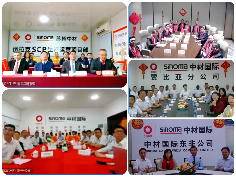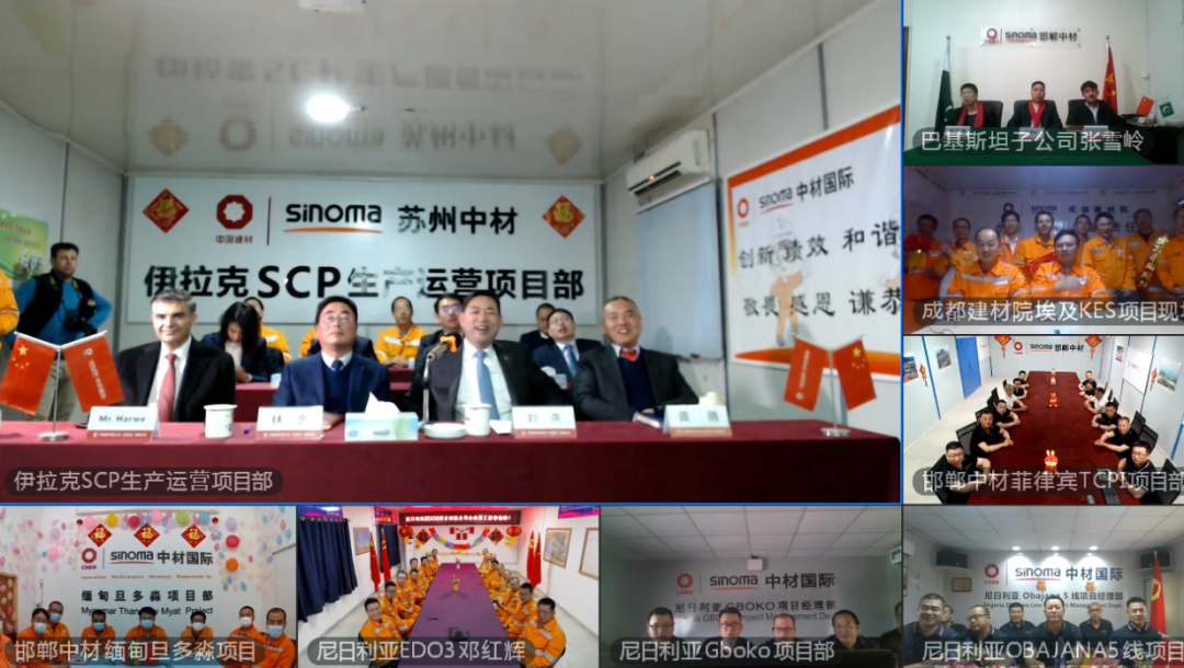 中國建材集團(tuán)黨委書記、董事長,中國建材股份黨委書記、董事長周育先線上出席活動(dòng),代表中國建材集團(tuán)、中國建材股份領(lǐng)導(dǎo)班子向海外一線員工拜年,并致以新春的美好祝福。 周育先發(fā)表新春重要講話。他表示,黨的二十大召開吹響了以中國式現(xiàn)代化全面推進(jìn)中華民族偉大復(fù)興的奮進(jìn)號角。集團(tuán)全體員工用堅(jiān)韌與奮進(jìn)在加快推進(jìn)高質(zhì)量發(fā)展的新征程中,書寫了中國建材新的精彩。集團(tuán)全年各項(xiàng)工作取得新成績,連續(xù)5年入圍全球品牌價(jià)值500強(qiáng)榜單。中材國際作為集團(tuán)三大主業(yè)工程技術(shù)裝備板塊主要發(fā)展平臺,為集團(tuán)高質(zhì)量發(fā)展、創(chuàng)世界一流企業(yè)作出了重要貢獻(xiàn)。中材國際令人矚目的國際化成就的背后,是一支甘于奉獻(xiàn)、勇于擔(dān)當(dāng)、奮于拼搏、善于管理、創(chuàng)新有為的海外干部員工隊(duì)伍,是一支能吃苦、能打硬仗的錚錚鐵軍。2023年是全面貫徹落實(shí)黨的二十大精神的開局之年,是集團(tuán)和中材國際高質(zhì)量發(fā)展、加快建設(shè)世界一流企業(yè)的開局之年,我們必當(dāng)無愧于時(shí)代和使命,向著宏偉藍(lán)圖與壯闊征程,向著中華民族偉大復(fù)興的第二個(gè)百年目標(biāo)不懈前行! 中國建材集團(tuán)總經(jīng)理李新華在活動(dòng)前通過電話方式,向中材國際堅(jiān)守海外現(xiàn)場的干部員工表達(dá)親切問候和崇高敬意! 中國建材集團(tuán)副總經(jīng)理,中國建材股份黨委副書記、總裁魏如山線上出席活動(dòng)并發(fā)表新春寄語。他感謝中材國際全體境外員工在不甘屈服的虎年里堅(jiān)定信心,堅(jiān)守崗位,艱苦付出。祝愿偉大祖國山河靜好皆無恙,祝愿中國建材萬眾一心譜新篇,祝福全體境外員工和家人安康如意。 中國建材股份黨委副書記,中材國際黨委書記、董事長劉燕,中材國際黨委副書記、總裁印志松,中材國際董事、副總裁朱兵,中材國際黨委副書記蔣中文,中材國際副總裁、財(cái)務(wù)總監(jiān)汪源分別在伊拉克、尼日利亞、烏茲別克斯坦、贊比亞、坦桑尼亞等5個(gè)屬地化公司參與活動(dòng)。 劉燕發(fā)表新春講話,他代表公司領(lǐng)導(dǎo)班子成員向全體海外干部職工致以崇高的敬意和衷心的感謝。他表示,公司的發(fā)展離不開每一位員工的奉獻(xiàn),中材國際始終心系海外一線,把保障海外員工身心健康放在首位,希望大家都能過上一個(gè)平安祥和的春節(jié)。他強(qiáng)調(diào),新的一年全體中材國際海外人將繼續(xù)乘風(fēng)破浪、勇毅前行,譜寫海外發(fā)展新篇章,在集團(tuán)國際化發(fā)展新征程上,展現(xiàn)中材國際新?lián)?dāng),新作為! 中材國際境外5位屬地化公司負(fù)責(zé)人分別從伊拉克、尼日利亞、烏茲別克斯坦、贊比亞、坦桑尼亞為大家送上新春祝福。 中材國際及所屬單位9位在境外慰問的領(lǐng)導(dǎo)分別從烏茲別克斯坦、坦桑尼亞、尼日利亞、伊拉克、沙特、埃及、阿爾及利亞、烏茲別克斯坦、贊比亞為大家送上新春祝福。 活動(dòng)最后,大家一同觀看海外項(xiàng)目錄制的祝福視頻?,F(xiàn)場氛圍喜慶熱鬧、歡樂祥和,雖然隔著屏幕,但大家的心緊密相連,喜悅和幸福溢于言表。伴隨著新年的鐘聲,境外大拜年活動(dòng)圓滿結(jié)束。在全球形勢依然充滿風(fēng)浪的境況下,此次活動(dòng)的舉辦尤為可貴,海外一線員工深受鼓舞、倍感振奮。大家紛紛表示,新春祝福溫暖人心,新春寄語催人奮進(jìn),新的一年,大家將牢記囑托,奮力拼搏,乘勢而上,共同開創(chuàng)更加美好的未來。