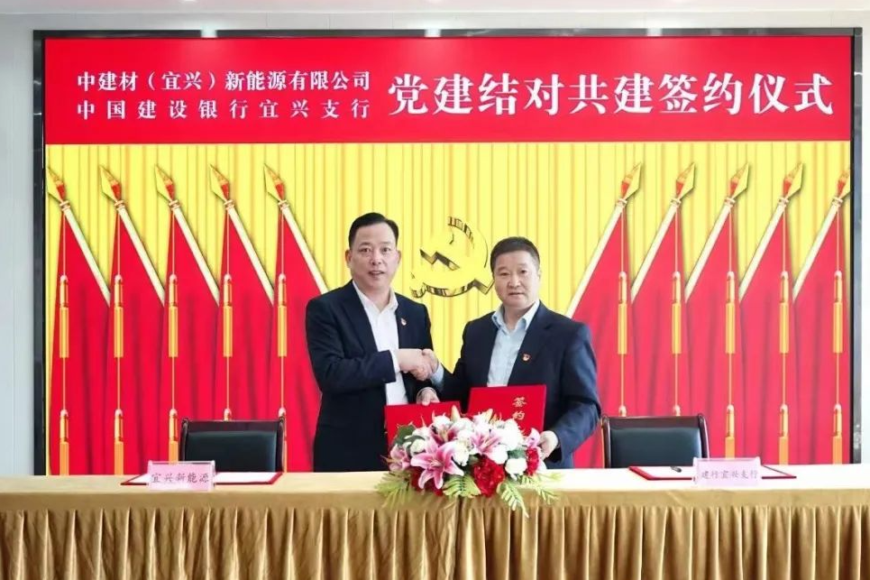 中建材(宜興)新能源與中國建設(shè)銀行江蘇省分行宜興支行開展“聯(lián)學(xué)黨的二十大、銀企共建促發(fā)展”黨建結(jié)對(duì)共建活動(dòng),探索新時(shí)代新形勢(shì)下基層黨建工作的新途徑新方法。