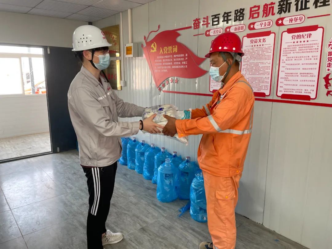 項(xiàng)目采取全封閉管理期間,除了嚴(yán)密管控項(xiàng)目人員進(jìn)出,還推出系列溫暖舉措:給廣大工人寫慰問信,安排專車對(duì)返廬隔離人員進(jìn)行道口接送,由專人負(fù)責(zé)一日三餐,及時(shí)檢查防疫物資,給各單位派送口罩、酒精、消毒水等物資,在現(xiàn)場設(shè)置健康監(jiān)測房間,準(zhǔn)備6個(gè)獨(dú)立房間作為居家健康隔離點(diǎn),給不會(huì)使用智能機(jī)和老人機(jī)的工人制作隨身碼方便出入管控和核酸檢測,這一點(diǎn)一滴的小事既安心又暖心。疫情期間項(xiàng)目的宣傳教育、病毒消殺、健康檢測、物資儲(chǔ)備、溝通協(xié)調(diào)每個(gè)項(xiàng)工作都有黨員的身影,他們共同筑起了堅(jiān)不可摧的戰(zhàn)斗堡壘,保障了項(xiàng)目生產(chǎn)建設(shè)穩(wěn)步推進(jìn)。