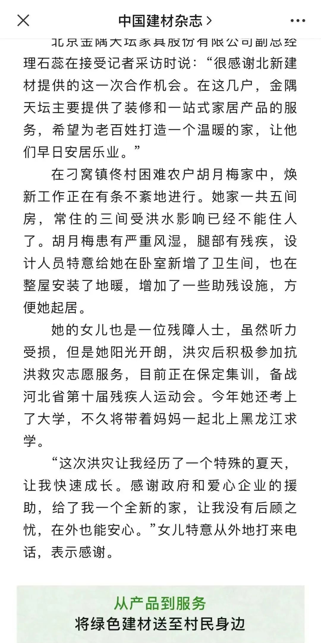 綠色高品質建材忙下鄉(xiāng)北新建材聯(lián)合天壇家具援助涿州重災戶一周煥新顏