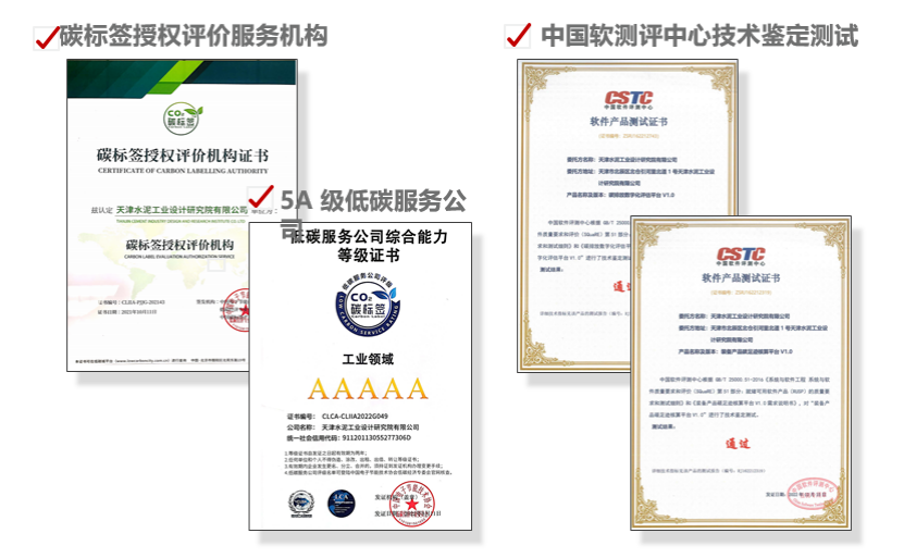 面對國家踐行綠色高質(zhì)量發(fā)展的需求,天津水泥院依托自身科技研發(fā)和數(shù)字化建設(shè)優(yōu)勢,自主開發(fā)了“雙碳”數(shù)字化公共服務(wù)平臺,包括碳資產(chǎn)管理平臺、工廠碳排放數(shù)字化核算平臺、裝備產(chǎn)品碳足跡核算平臺、綠色低碳建筑碳平臺和區(qū)域能碳雙控平臺,面向企業(yè)、園區(qū)、政府提供圍繞“雙碳”目標的管、算、評、改的一站式服務(wù)。