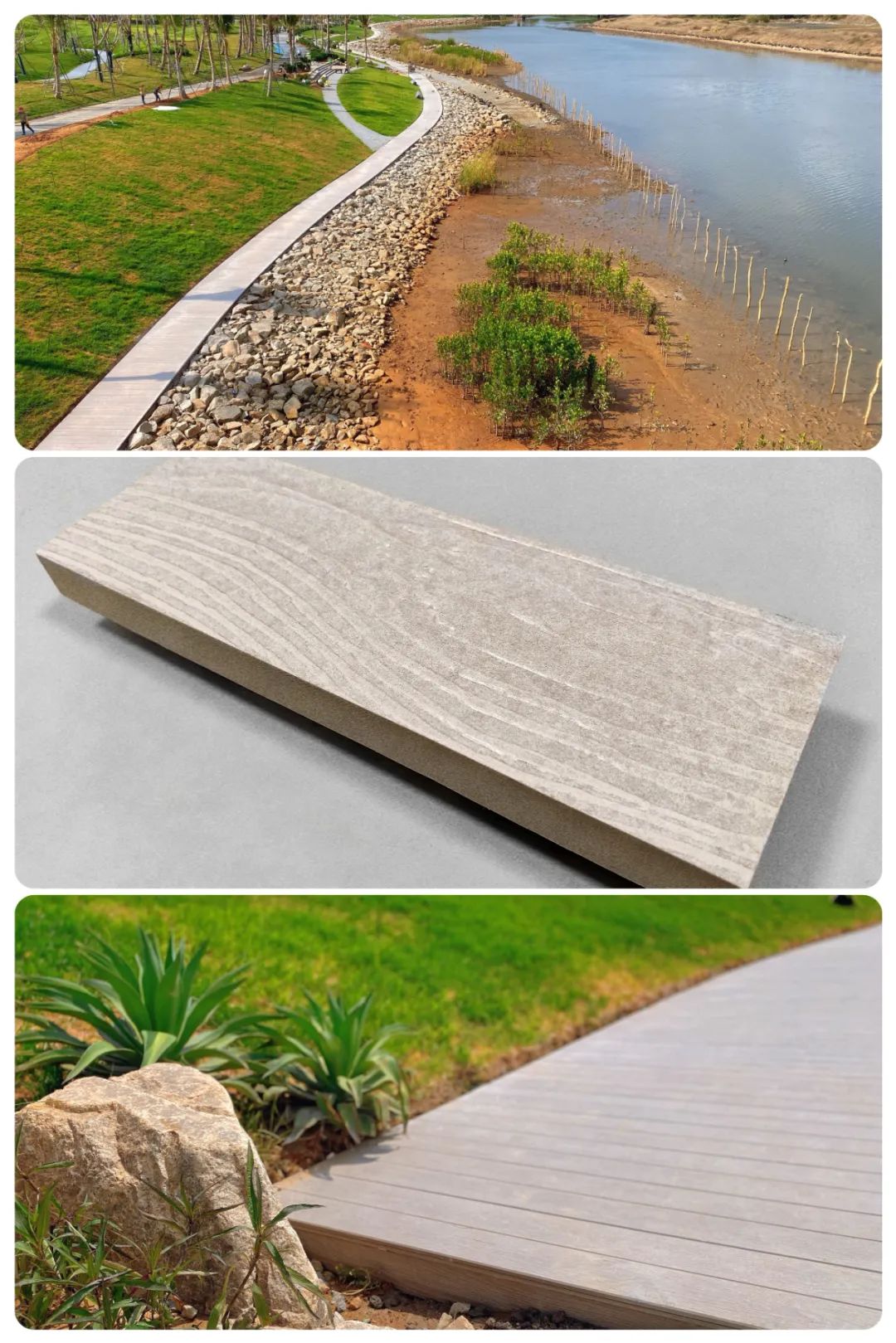 中材漢鯤棧道板是一種表面具有天然雪松紋理,集綠色環(huán)保、通體一色、A級防火、防潮防蛀、耐候性強、耐磨防滑、施工便捷、簡易維護等優(yōu)良性能為一體的綠色新型板材;作為木質(zhì)材料、木塑制品的最佳替代品,具有更好的耐候性、實用性與經(jīng)濟性,已廣泛應(yīng)用于園林景觀項目中。