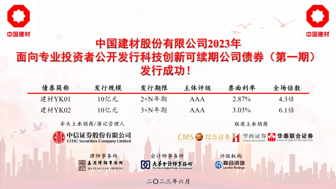 中國(guó)建材股份成功發(fā)行首期科技創(chuàng)新類可續(xù)期公司債