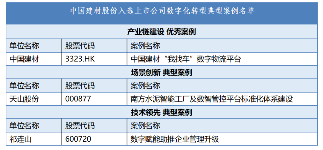中國(guó)建材股份三項(xiàng)場(chǎng)景入選2023年度上市公司數(shù)字化轉(zhuǎn)型案例