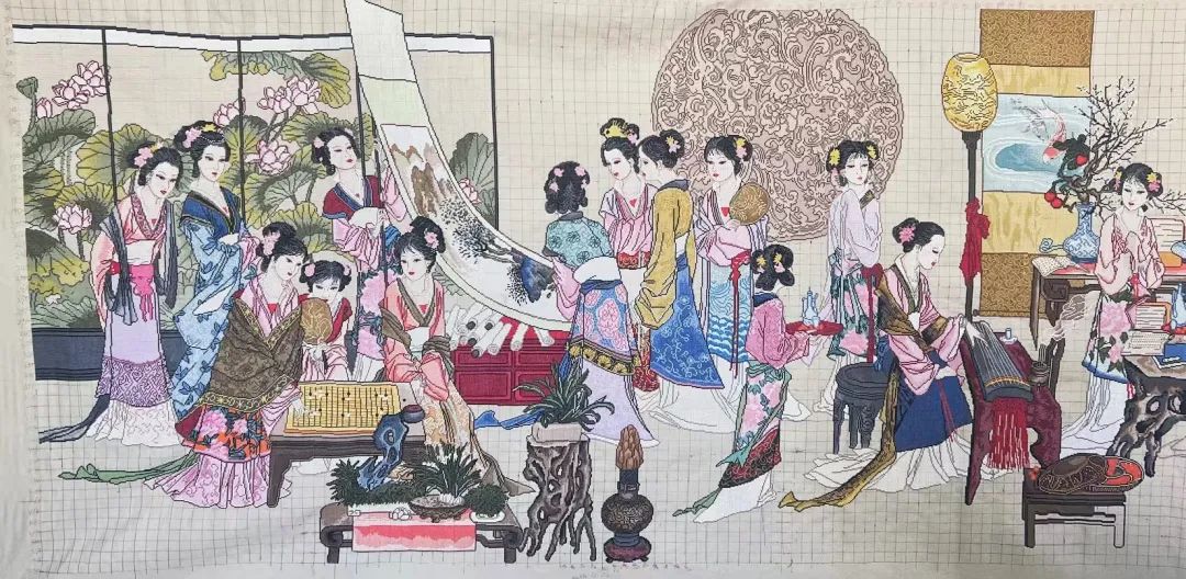 這是一副以“琴棋書畫”為主題的十字繡