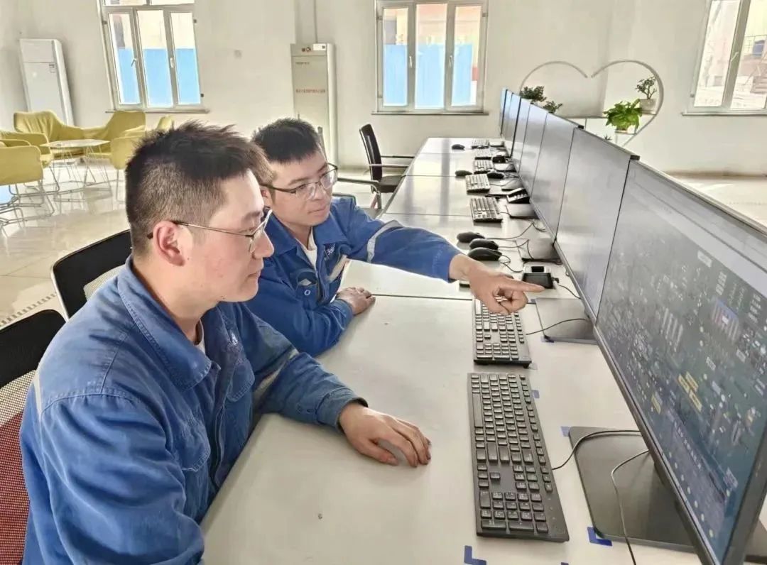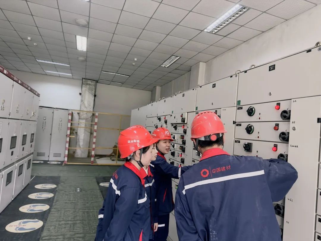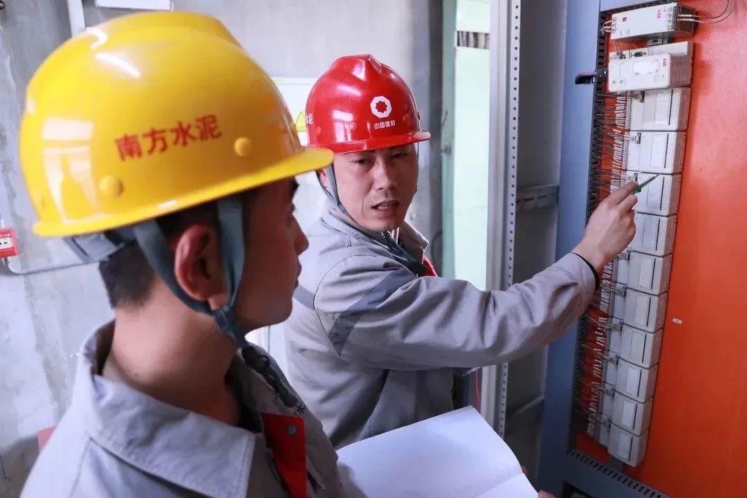 滁州中聯(lián)車間班長帶領(lǐng)青年員工排查在生產(chǎn)過程中出現(xiàn)的電氣故障,細致分析、耐心講解。