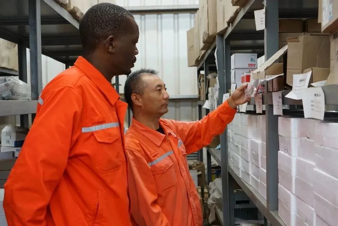 中國建材贊比亞工業(yè)園采購主管正在認真地為本地員工講解倉庫物資分類方法及管理規(guī)范。